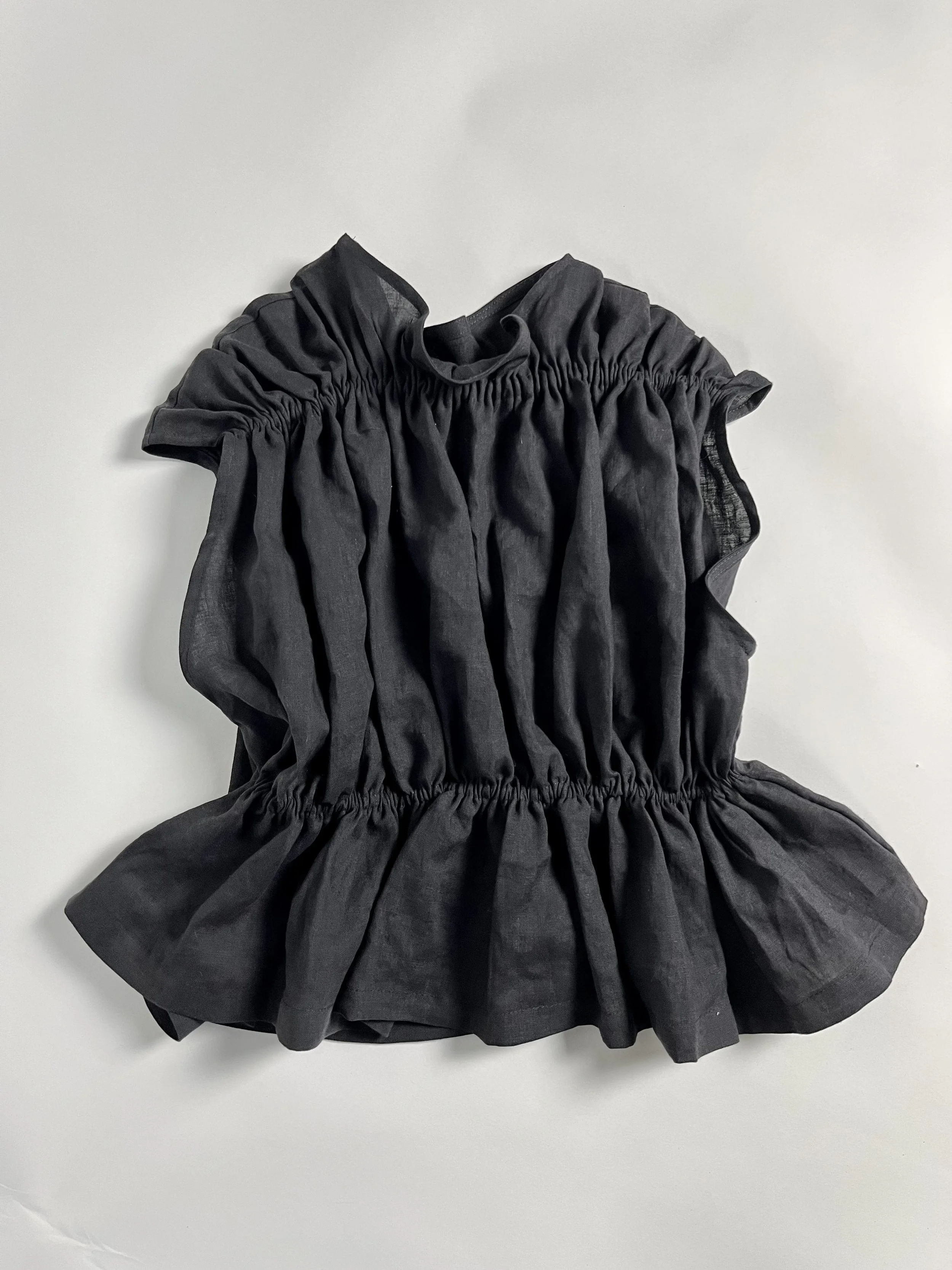 Tonnta - Navy - $275 - Irish Linen cap sleeve top with front and back gathering details