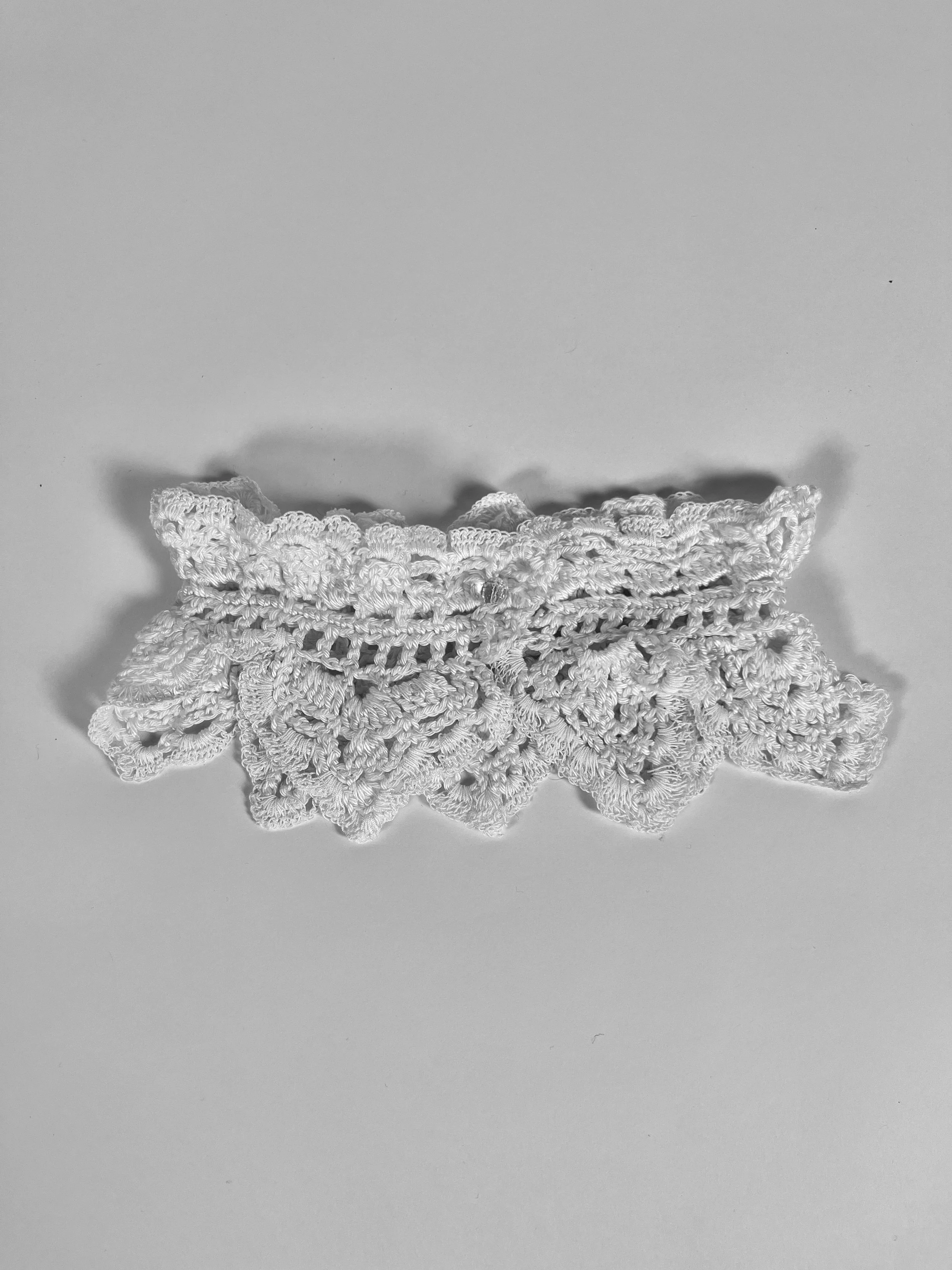 Críos lace collar - white -$325 - Crochet cotton lace collar. Crystal button closure.